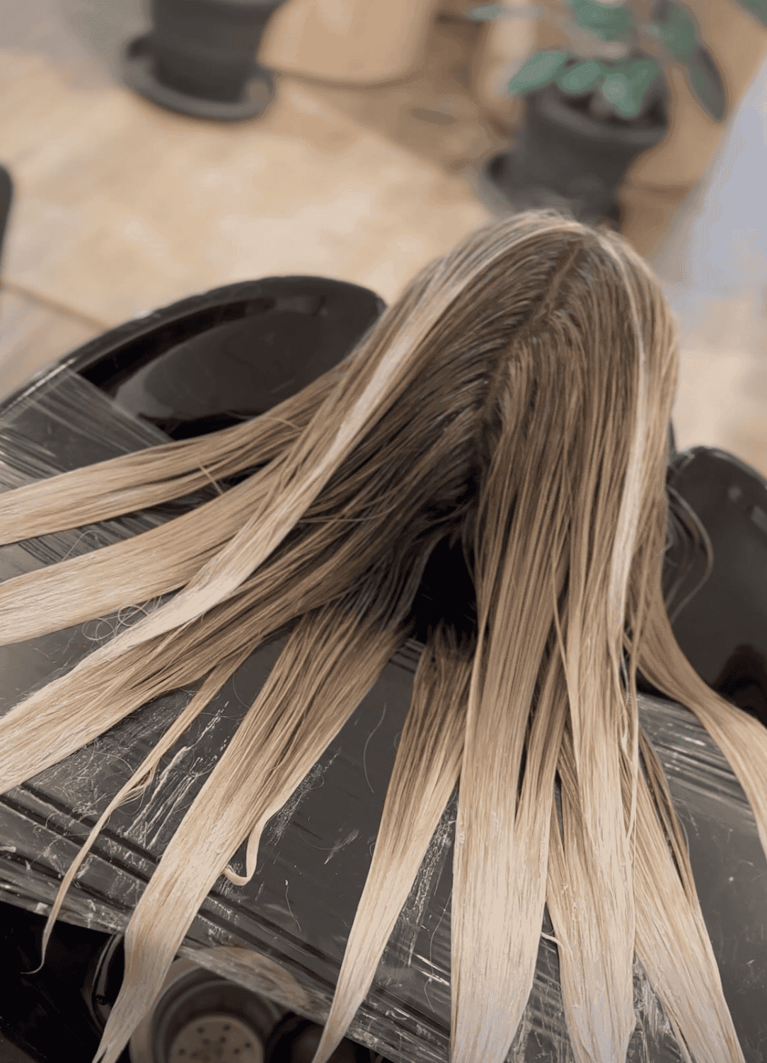 The accumulation of residues will create a layer on the hair shaft affecting the way light interacts with the hair and obscure the true colour of bleached hair. To prevent this it’s important to incorporate clarifying shampoos regularly for remove product residue and maintain the desired blonde tone. SOLU is a top choice for me for shampoo because it is rich in amino acids and antioxidants.
